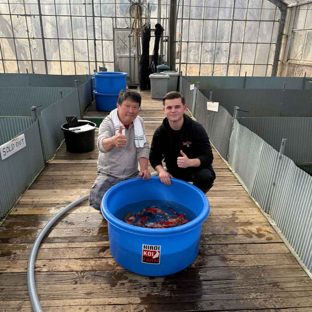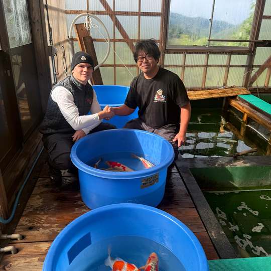 Iedere jaar brengen wij samen meer dan een maand door in Japan. We reizen twee keer naar het land van herkomst om persoonlijk koi te selecteren bij gerenommeerde kwekers. Tijdens deze reizen bekijken we enorme aantallen vissen en kiezen we alleen de exemplaren uit waar we volledig achter staan.