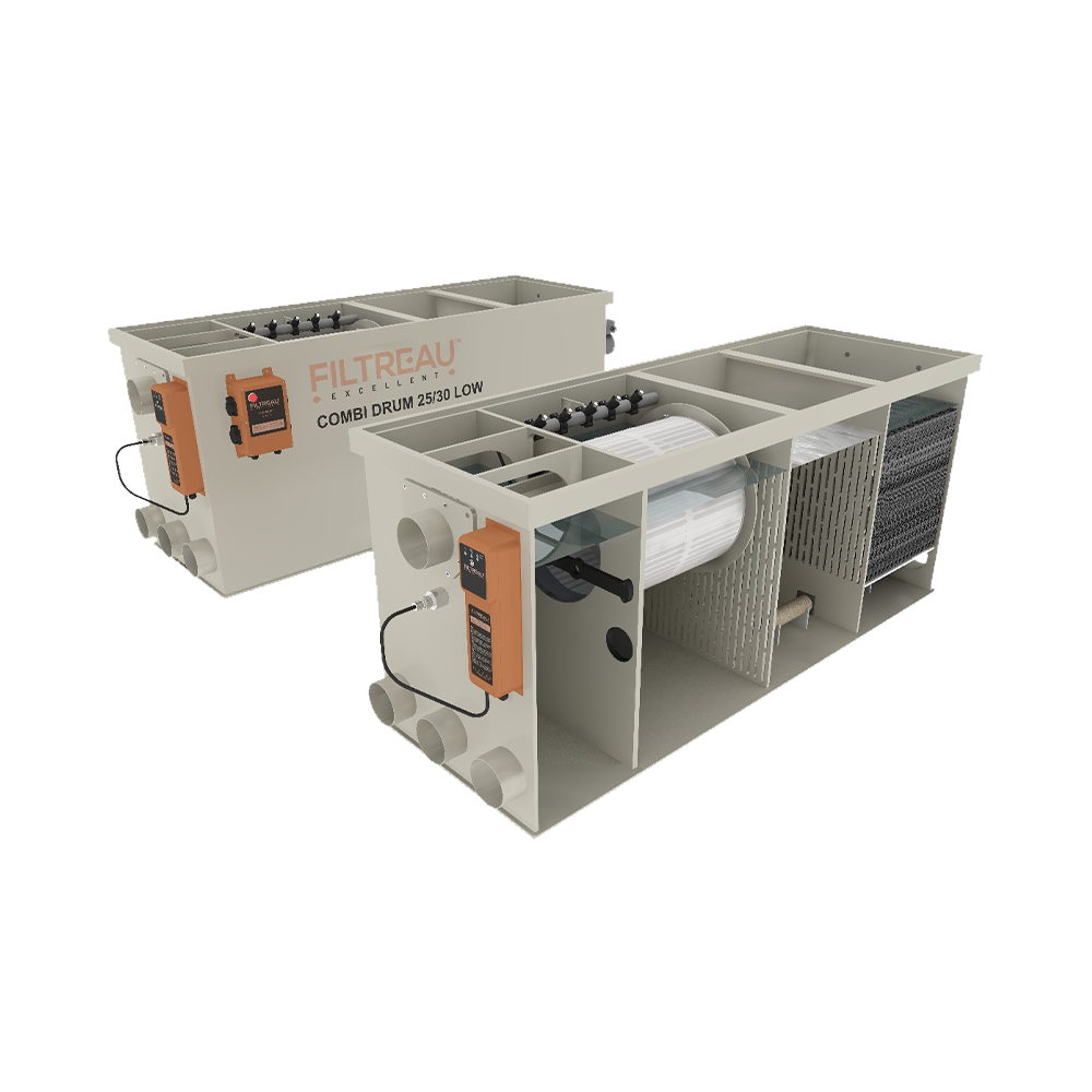 Bevorder de helderheid en kwaliteit van uw vijverwater met de COMBI DRUM 25/30 low van Filtreau Excellent. Dit filtersysteem is ideaal voor zowel mechanische als biologische filtratie en draagt gegarandeerd bij aan een optimale leefomgeving voor al uw flora en fauna in uw vijver.