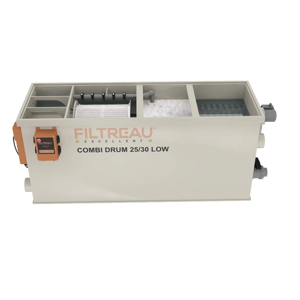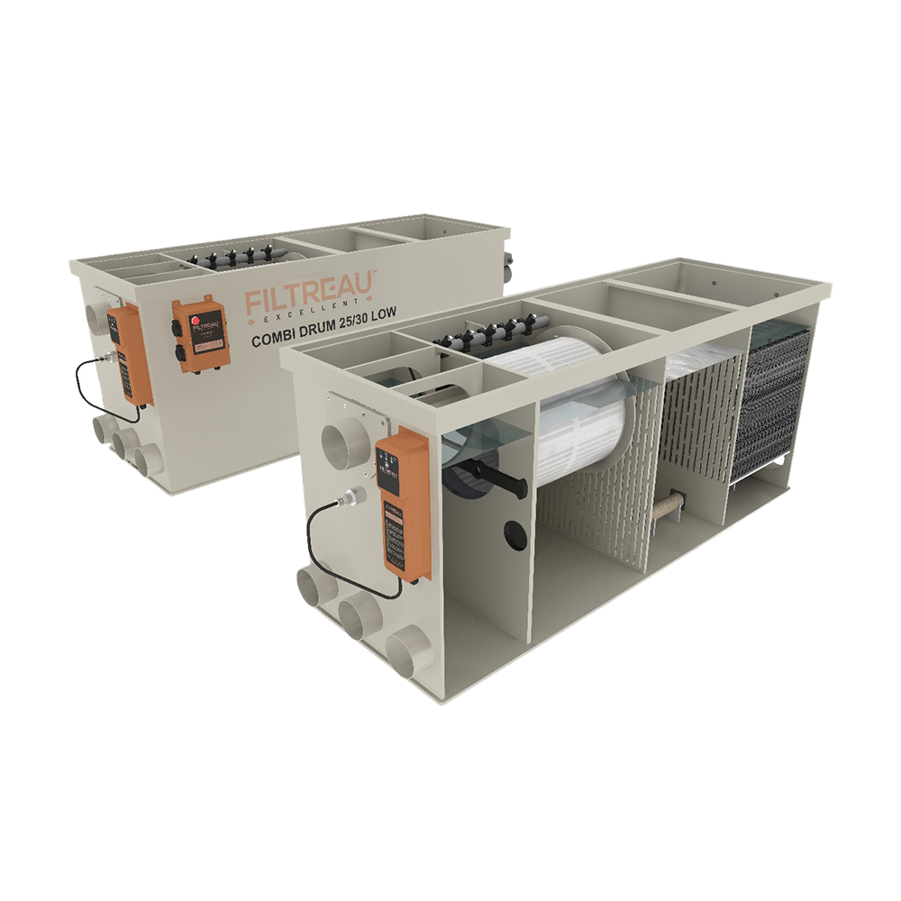 Bevorder de helderheid en kwaliteit van uw vijverwater met de COMBI DRUM 25/30 low van Filtreau Excellent. Dit filtersysteem is ideaal voor zowel mechanische als biologische filtratie en draagt gegarandeerd bij aan een optimale leefomgeving voor al uw flora en fauna in uw vijver.