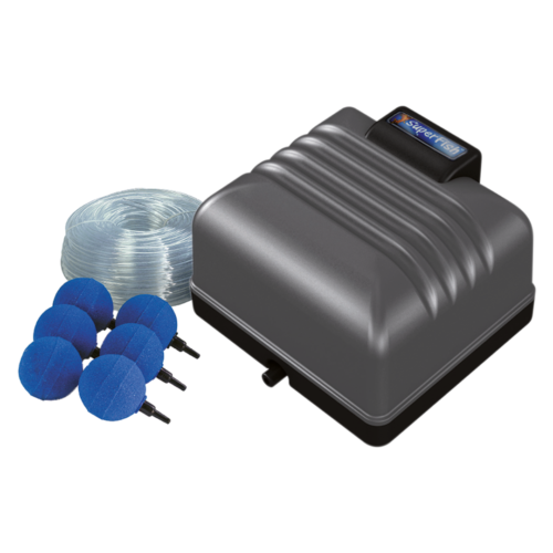 De Superfish Koi-Flow 60 Beluchtingsset is ideaal voor grote vijvers, koivijvers of installaties waar maximale zuurstoftoevoer gewenst is. Met een luchtcapaciteit tot ongeveer 60 liter per minuut levert deze set een sterke en constante luchtstroom die helpt om zuurstof effectief door de waterkolom te verspreiden.