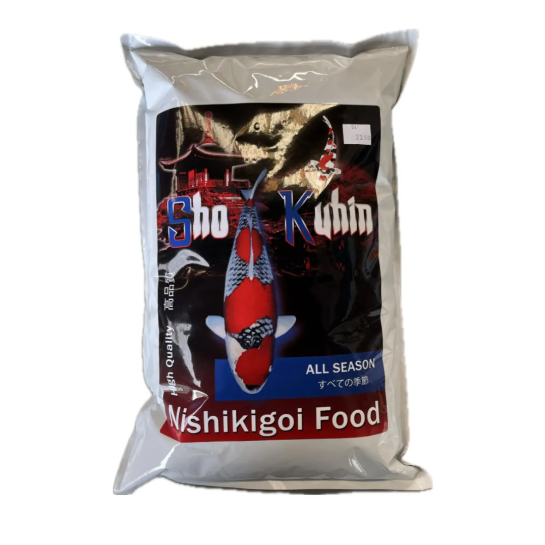 Sho Kuhin All Season is een uitgebalanceerd koivoer dat het hele jaar door kan worden gevoerd, vanaf watertemperaturen van ongeveer 8 °C. De mix bevat goed verteerbare eiwitten, een stabiele vetverhouding en alle essentiële voedingsstoffen die koi nodig hebben om gezond en actief te blijven. Dit maakt het voer ideaal voor overgangsperioden zoals de lente en herfst, maar ook voor de zomermaanden. De structuur blijft stevig in het water, waardoor er minder voer verloren gaat en de waterkwaliteit behouden blijft. Sho Kuhin All Season ondersteunt zowel de vitaliteit als de kleurontwikkeling van koi en is geschikt voor dagelijks gebruik in vijvers met wisselende temperaturen.