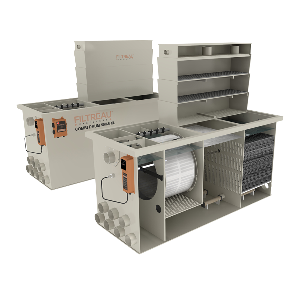 Ontdek de moderne verfijnde zuurstofrijke kracht en uniciteit van de Trickle filter van Filtreau Excellent. uitsluitend ontworpen voor koi- en siervissen. Het Trickle systeem biedt een uitstekende biologische werking en optimaliseert de zuurstofniveaus en zorgt voor een optimale gezondheid van de flora en fauna en zuurstofrijke vijver.